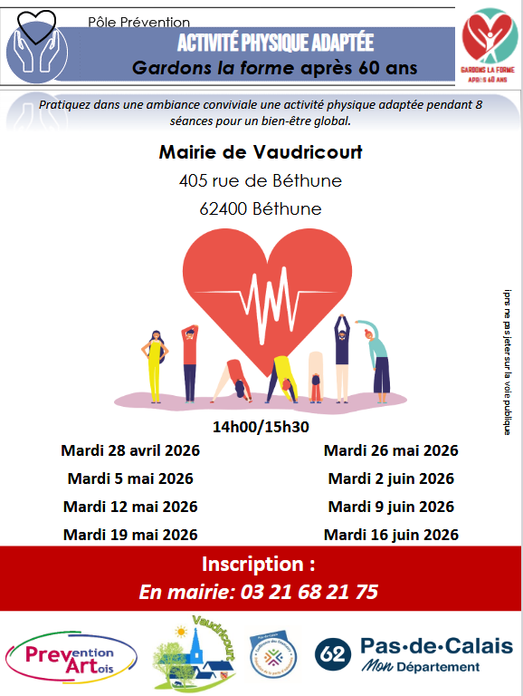 La commune vous propose en collaboration avec la prévention Artois, le département et la conférence des financeurs,