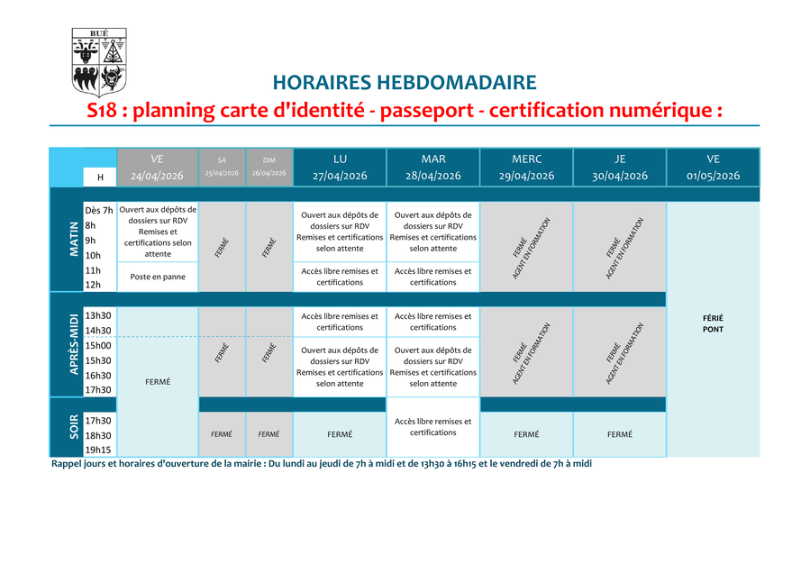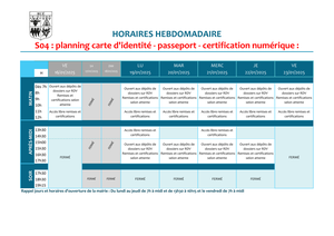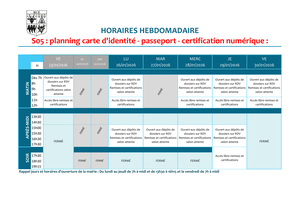 Jours et horaires d'ouverture du bureau des titres d'identité et certification numérique :