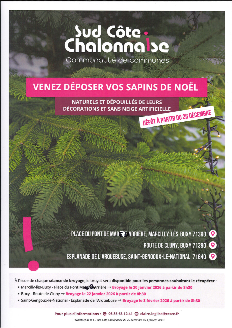 le lieu de dépôt pour les sapins de noel à Marcilly-les-Buxy est :