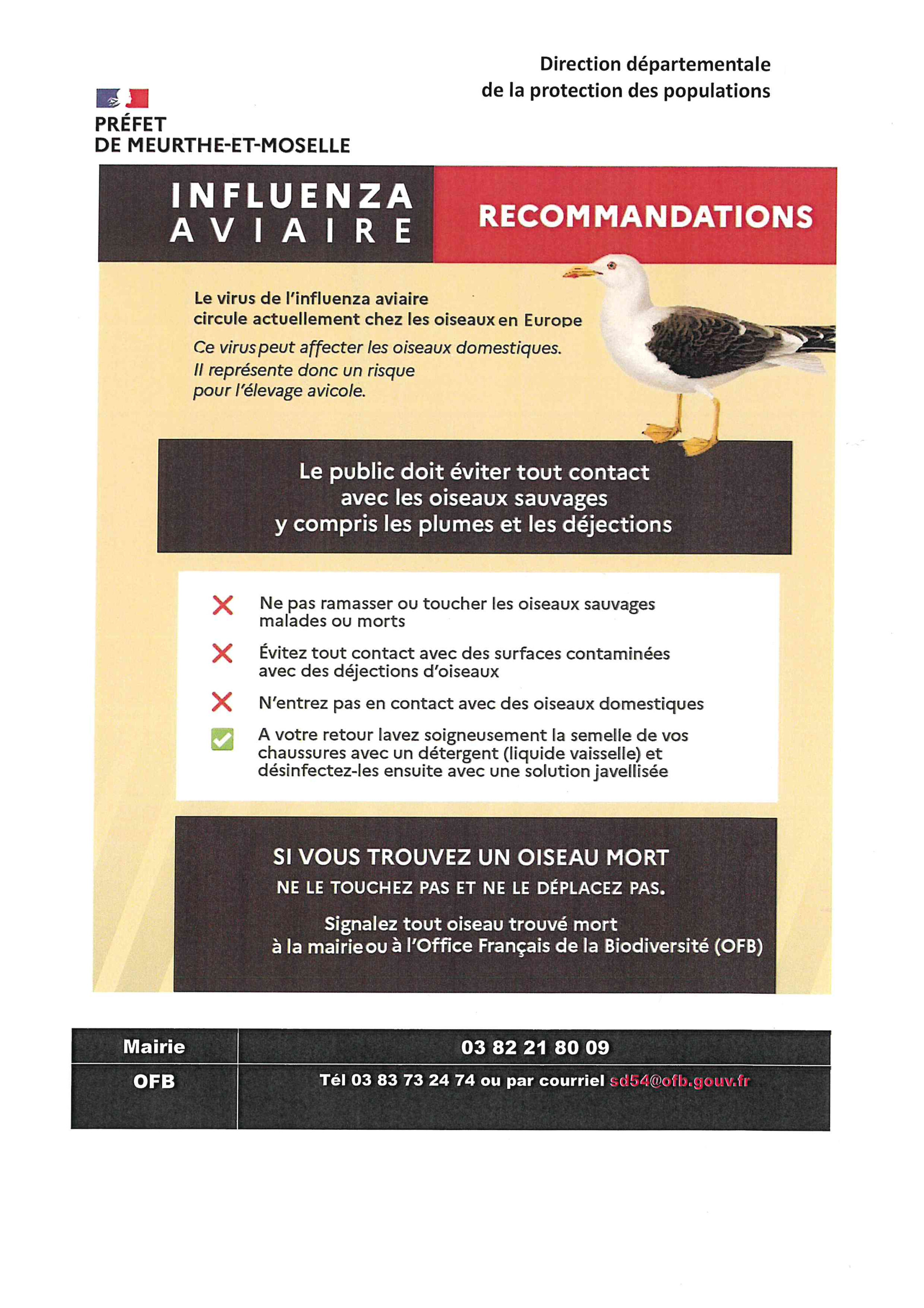 Interdiction des rassemblements d'oiseaux.