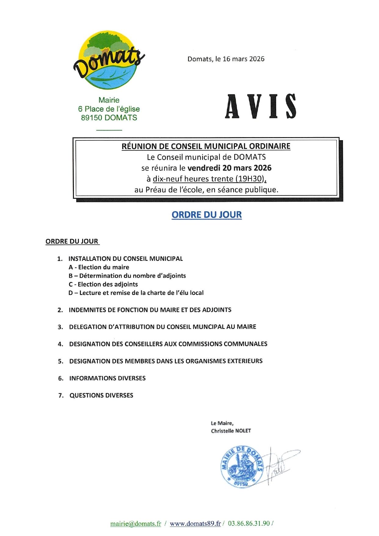 6 place de l'église 89150 Domats