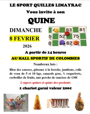 Dimanche 15 février, c'est le comité d'animation de Talespues qui organise, à son tour, son quine annuel à la salle des fêtes de Talespues à partir de 14 heures où, là aussi, de nombreux lots alimentaires vous seront attribués et tout particulièrement les deux repas dans un des meilleurs restaurants gastronomiques du secteur.