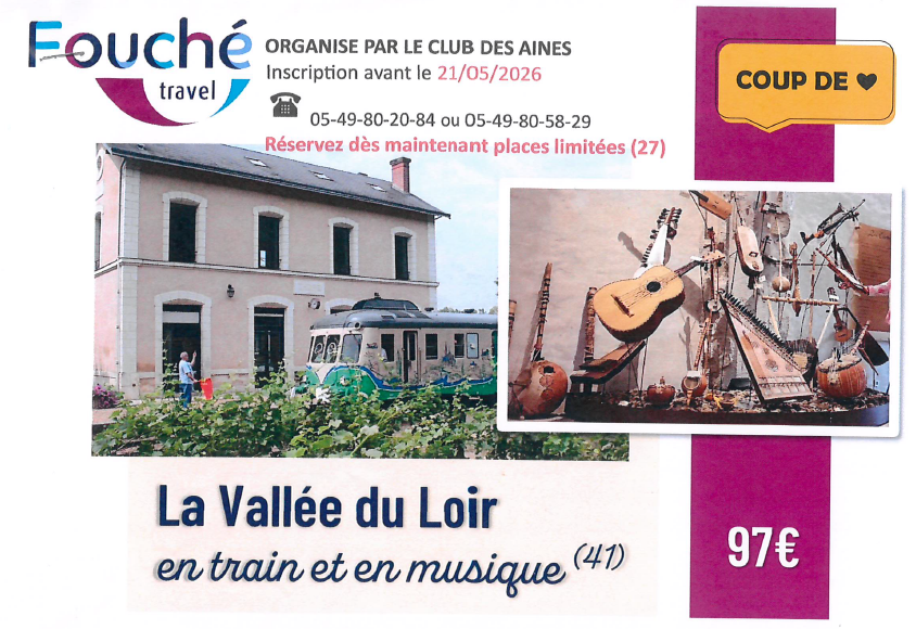 Le départ est prévu à 6h00 (Place de la Mairie), en direction de La Vallée du Loir (41).