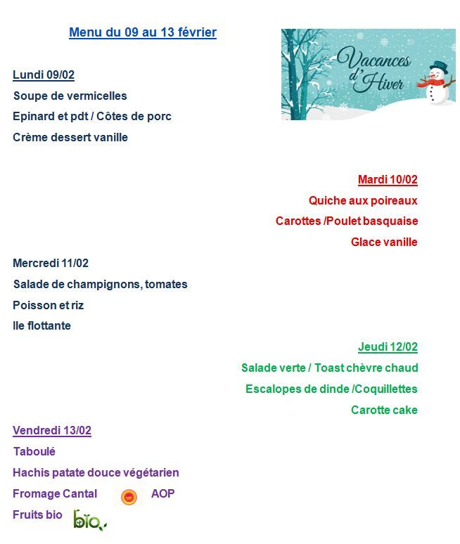 Les inscriptions pour les vacances de février sont ouvertes sur le site Gestion cantine.