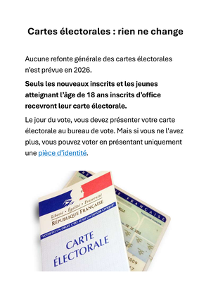 Seuls les administrés inscrits depuis juin 2024 et les jeunes atteignant l’âge de 18 ans inscrits d’office recevront leur carte électorale.