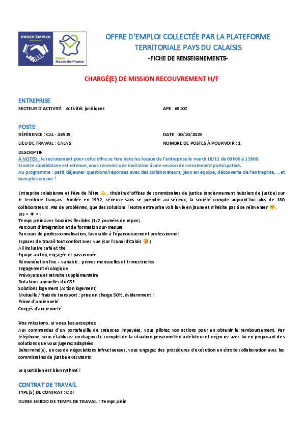 Démarchage à partir de la semaine prochaine, pour une durée de 4 semaines.