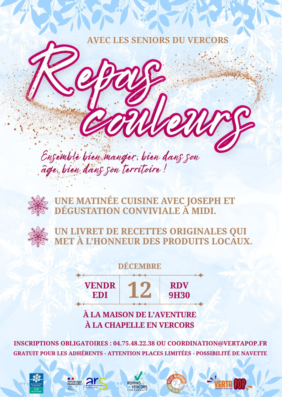 Un dernier repas couleurs pour l'année 2025, dans le cadre du PAT le Vendredi 12 décembre 2025 avec Joseph pour les séniors du Royans / Vercors.