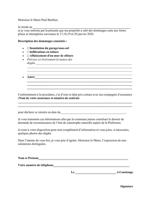 Objectif : Permettre à la commune de demander la reconnaissance de l’état de catastrophe naturelle (CATNAT).