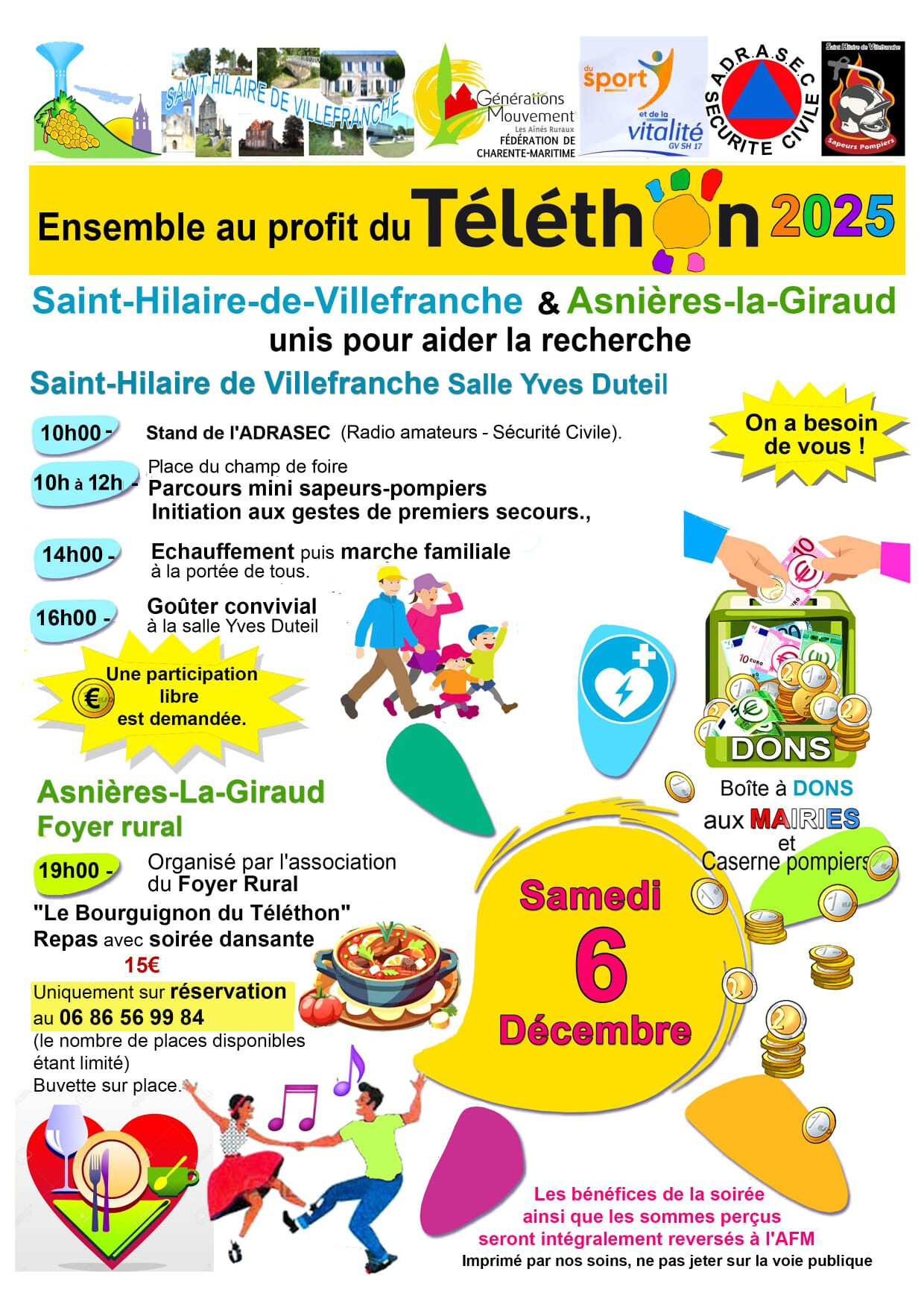 -Sainte-Même : samedi 29 novembre -Saint-Hilaire-de-Villefranche : dimanche 7 décembre