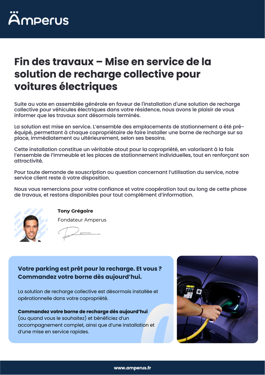 Le pré-équipement est terminé et permet à chacun de faire installer une borne de rechange.