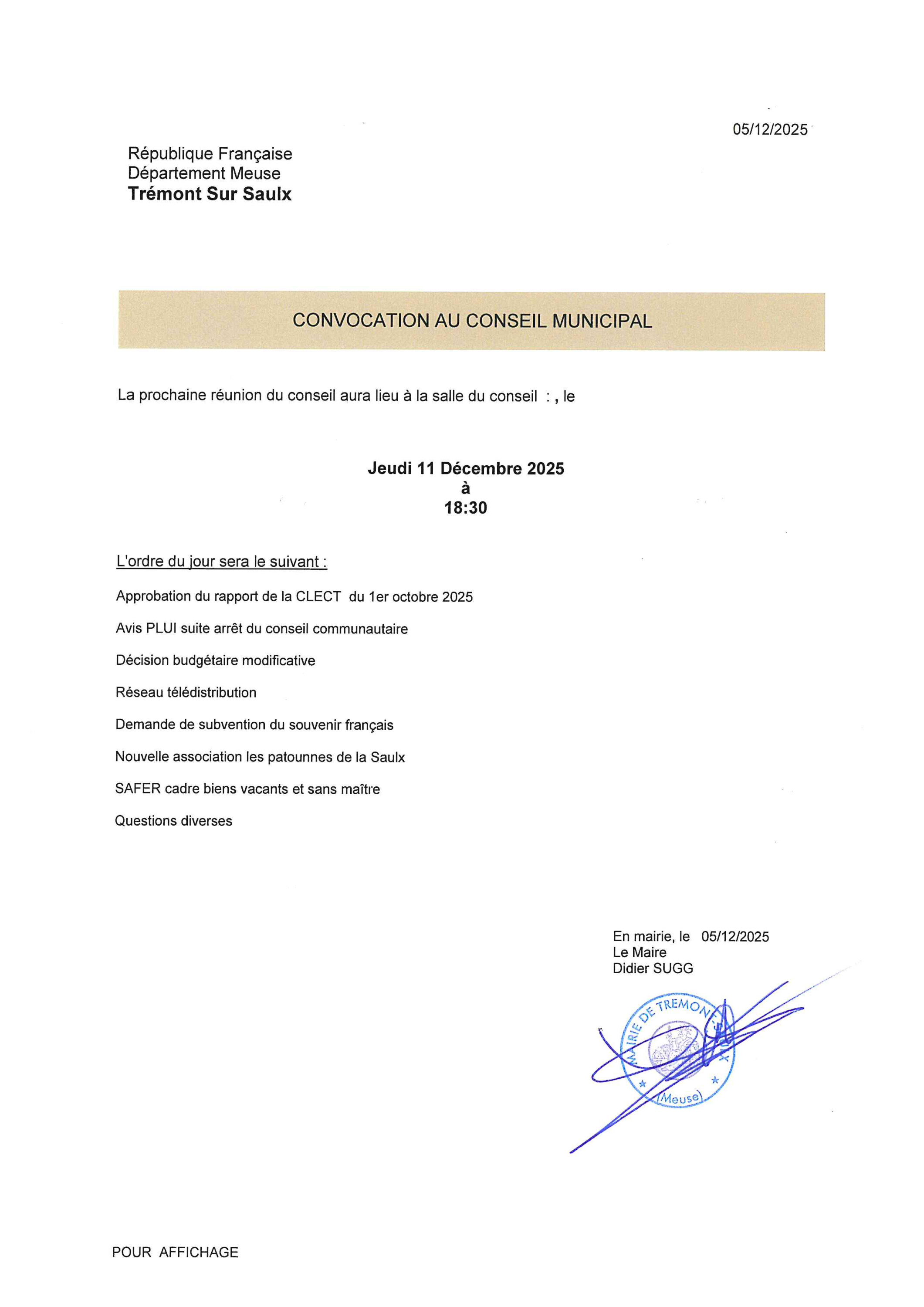 Suite congés de fin d'année, le secrétariat de mairie sera fermé le lundi 8 décembre, du 24 au 29 décembre et le 2 janvier 2026.
