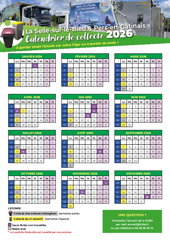 Comme chaque année, les agents du service de gestion des déchets de la 3CBO vous proposeront le calendrier 2026 à compter de la première semaine de novembre.