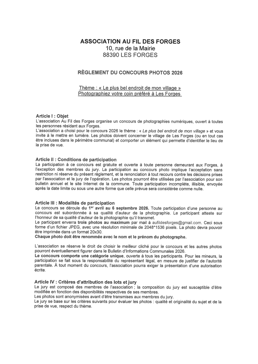 Règlement du concours 2026 :