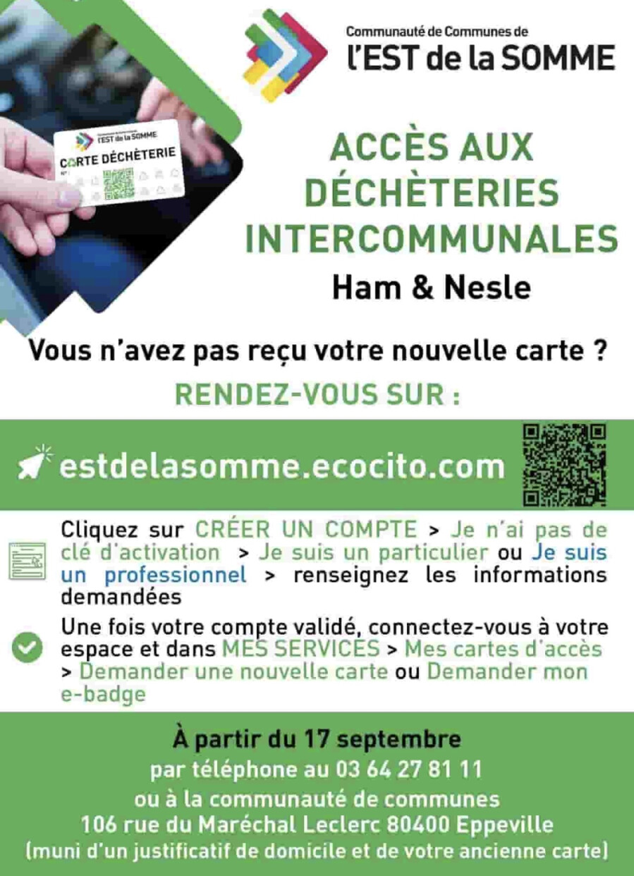 ℹ️ Pour savoir comment obtenir votre carte et toutes les informations pratiques, rendez-vous sur le site de la CCES : https://estdelasomme.fr/les-decheteries/