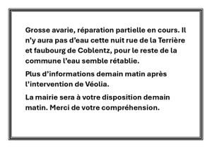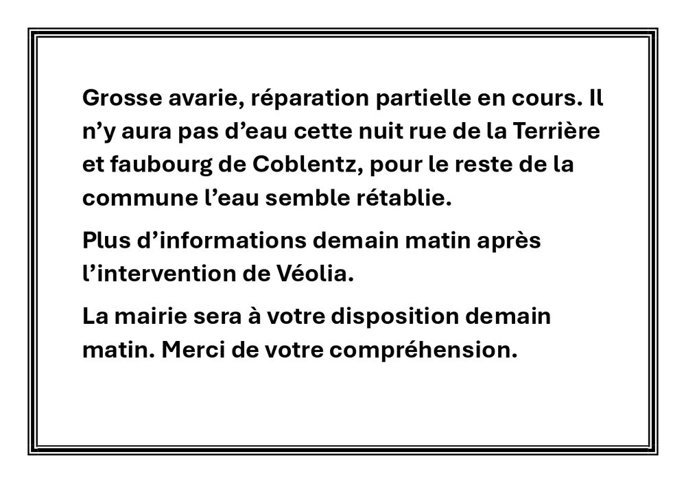 Coupure d'eau générale sur la commune en ce moment .