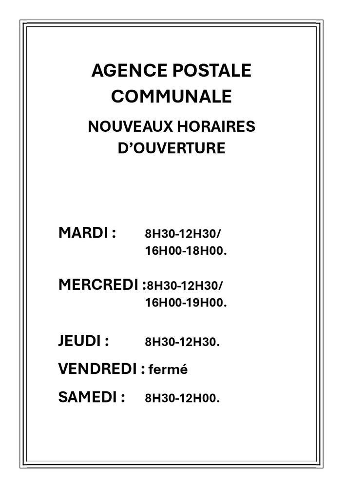 Les horaires d'ouverture changent, ci-dessous les nouveaux horaires