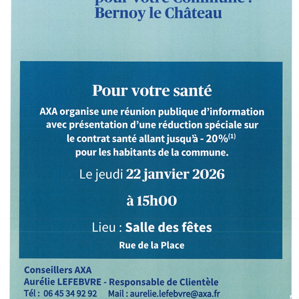 réunion d'information sur la santé avec AXA et tarif préférentiel pour les habitants de la commune.