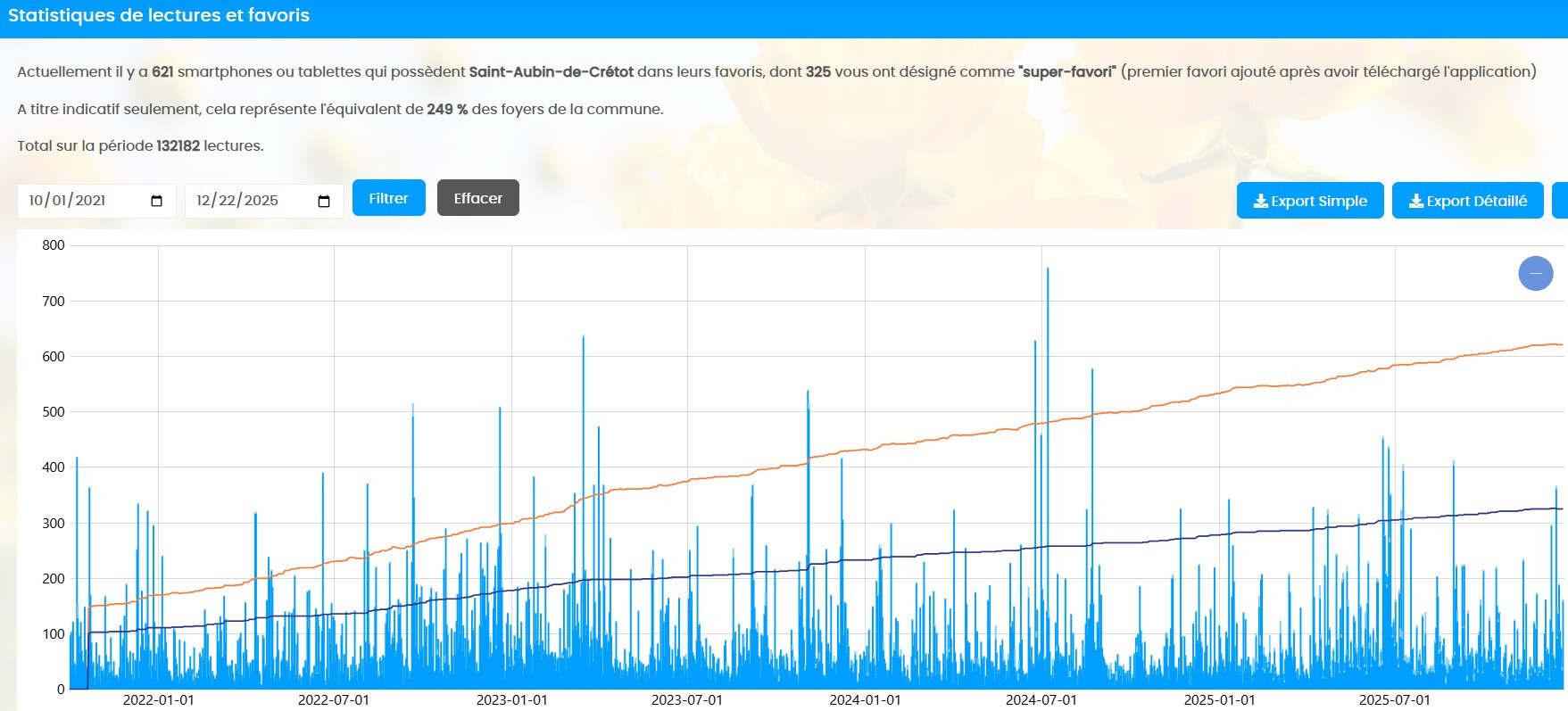 En 2025 , il y a +/- 600 smartphones en Favoris pour St Aubin et il y a eu autour de 150000 vues au total depuis 4 ans