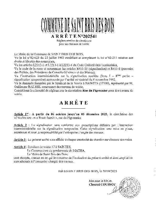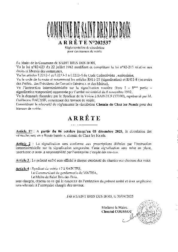 Suite à un dépôt sauvage de déchets, la Mairie de St Bris des Bois à porté plainte auprès du Tribunal. Le contrevenant a été condamné à régler une amende