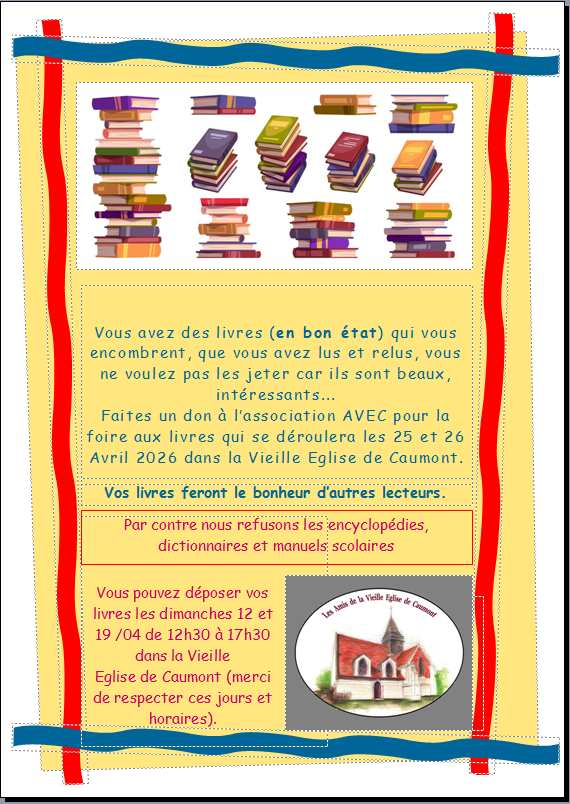 Si vous avez un enfant à inscrire à l'école de Caumont pour la rentrée de septembre 2026, merci d'effectuer l'inscription en Mairie dès à présent.