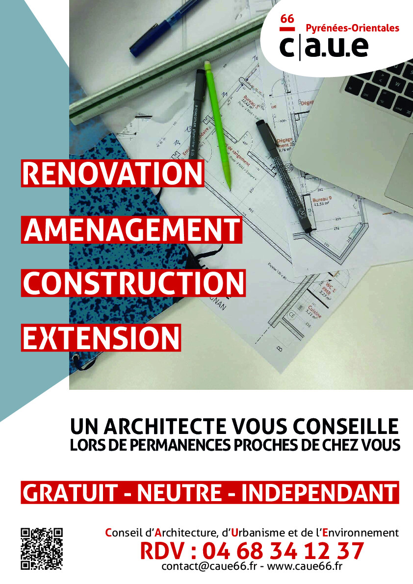 Pour optimiser les échanges et éviter toute attente, il est préférable de prendre rendez-vous en contactant directement le CAUE 66 :