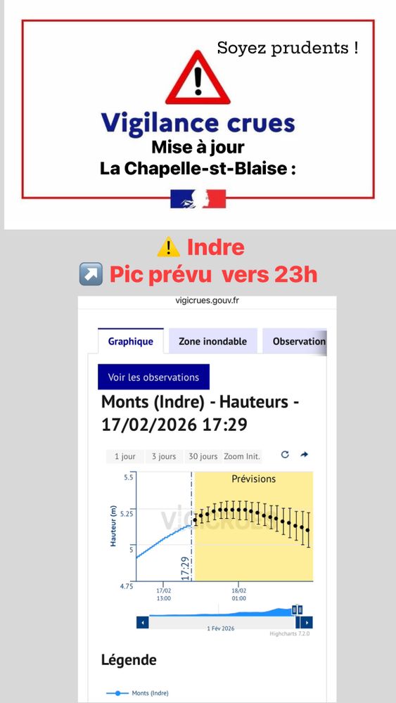 đ Suivez lâĂ©volution en temps rĂ©el sur : vigicrues.gouv.fr (station Monts)