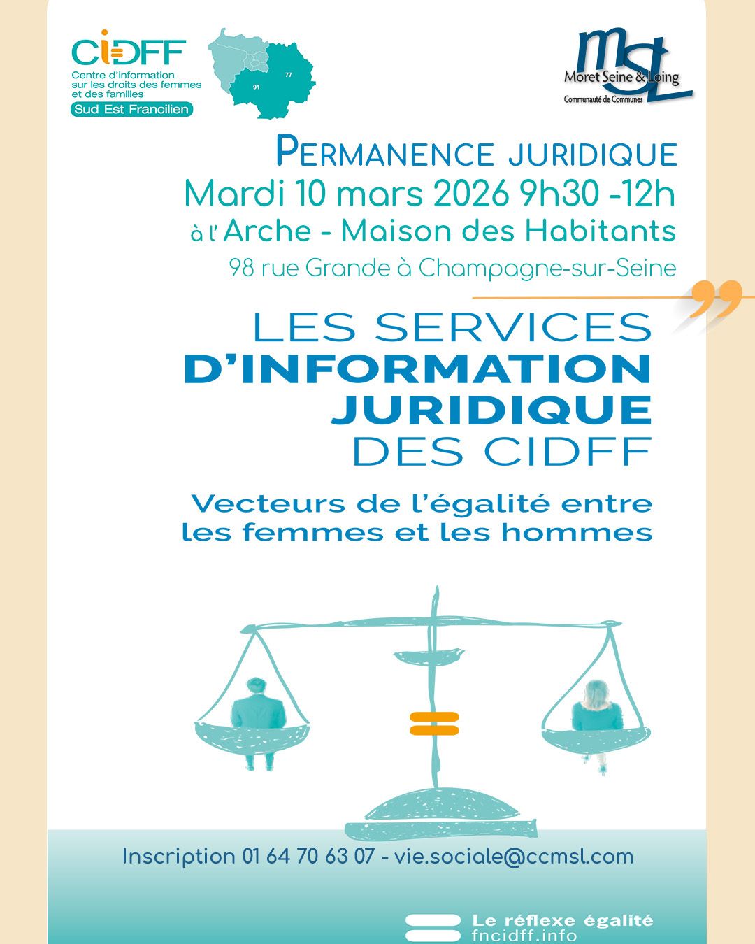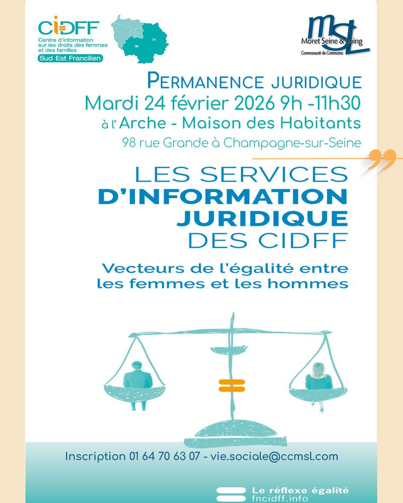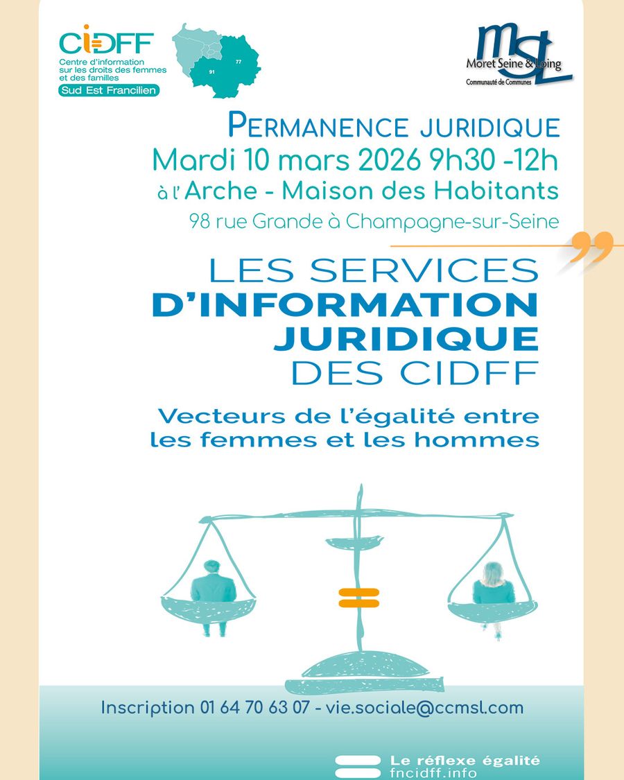 Le CIDFF (𝘊𝘦𝘯𝘵𝘳𝘦 𝘥’𝘐𝘯𝘧𝘰𝘳𝘮𝘢𝘵𝘪𝘰𝘯 𝘱𝘰𝘶𝘳 𝘭𝘦𝘴 𝘋𝘳𝘰𝘪𝘵𝘴 𝘥𝘦𝘴 𝘍𝘦𝘮𝘮𝘦𝘴 𝘦𝘵 𝘥𝘦𝘴 𝘍𝘢𝘮𝘪𝘭𝘭𝘦𝘴) met en place des permanences et informations juridiques en toute confidentialité, en droit de la famille, droit du travail, consommation, droit du logement...et service d'aide aux victimes d'infractions.