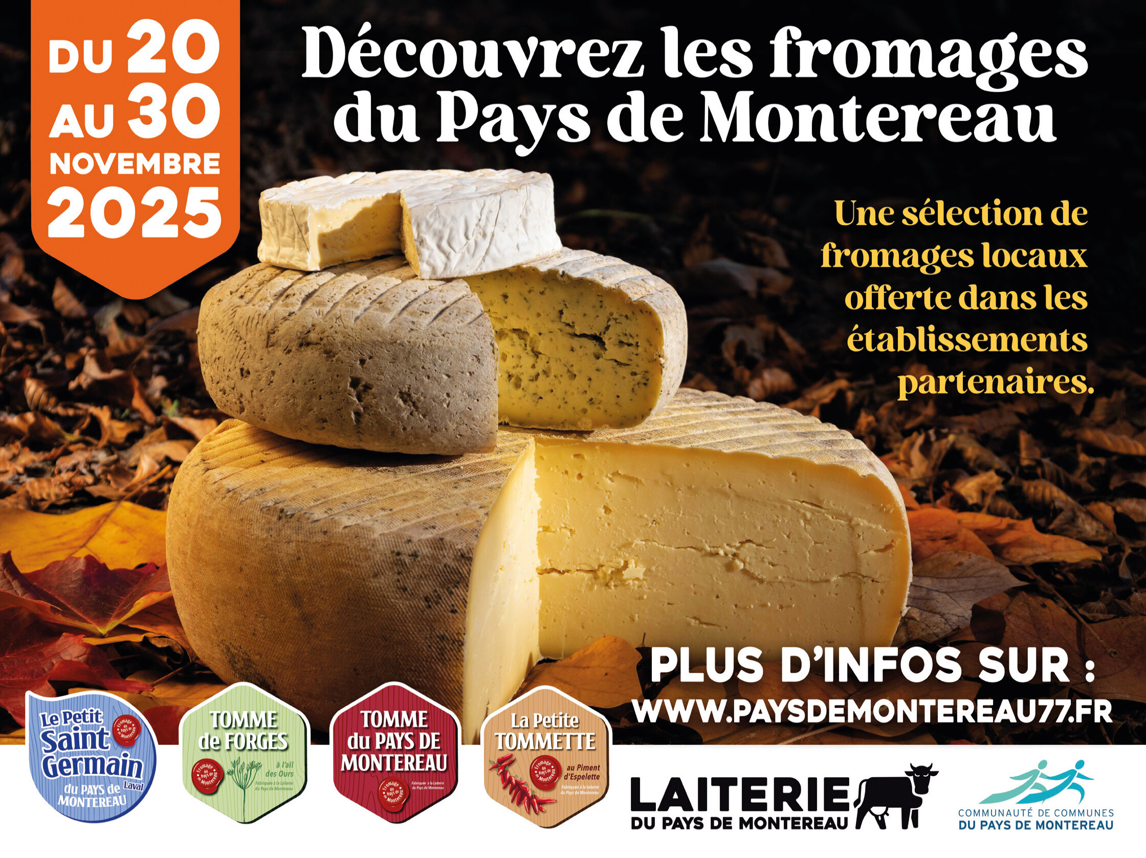 Du 20 au 30 novembre, la Communauté de Communes du Pays de Montereau vous offre en dégustation dans les établissements partenaires une sélection des fromages de la Laiterie du Pays de Montereau : Tomme du Pays de Montereau, Tomme à l'ail des ours, Petit Saint Germain Laval et la nouveauté 2025 La Petite Tomette au Piment d'Espelette ! Régalez-vous et demandez une part ( offerte ) à votre établissement ! Liste ci-dessous :