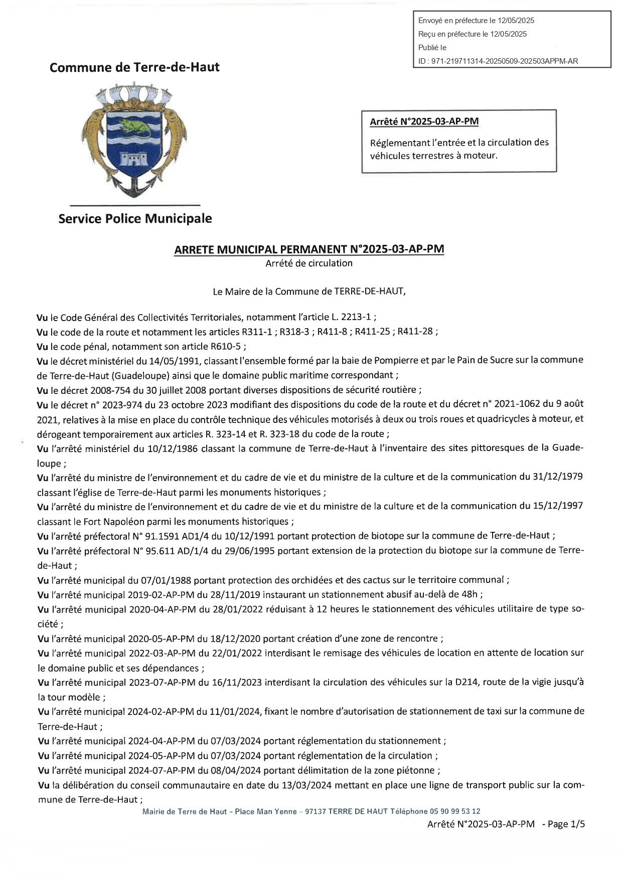 ✅ Autorisation obligatoire pour introduire tout nouveau véhicule terrestre à moteur (démarche en mairie 1 mois à l'avance). Les véhicules existants doivent se régulariser dans un délai de 3 mois.