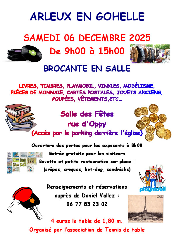 Grande brocante annuelle dans la salle des fêtes organisée par l'association de tennis de table.