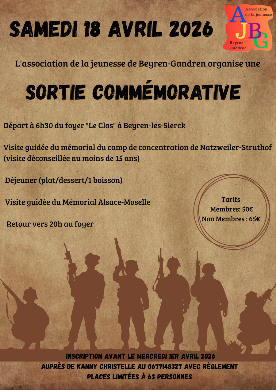 L’Association de la Jeunesse de Beyren-Gandren organise une sortie commémorative le samedi 18 avril 2026.