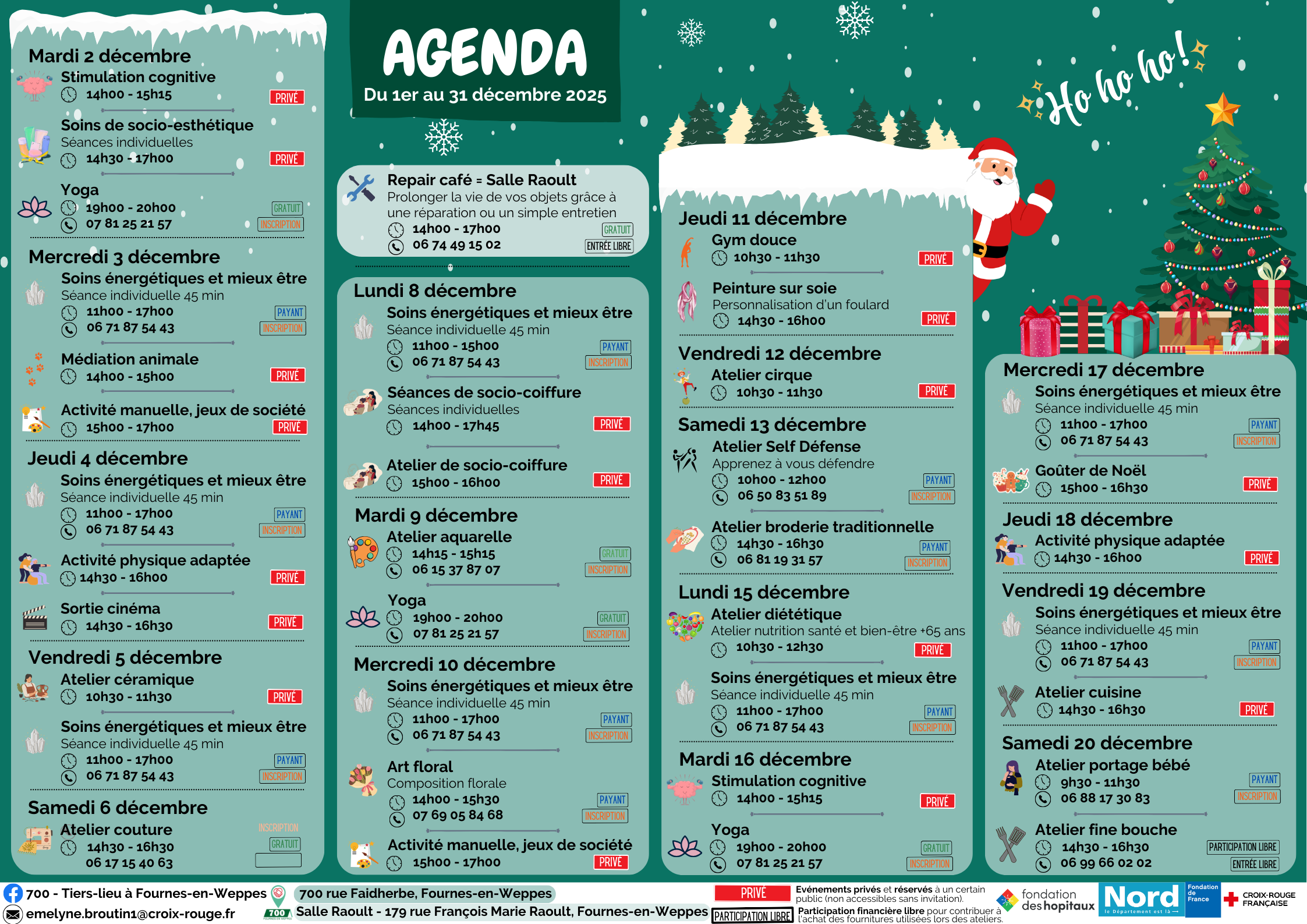 planning des activités du 700 pour ce mois de décembre, qui marquera la fin de cette belle année.