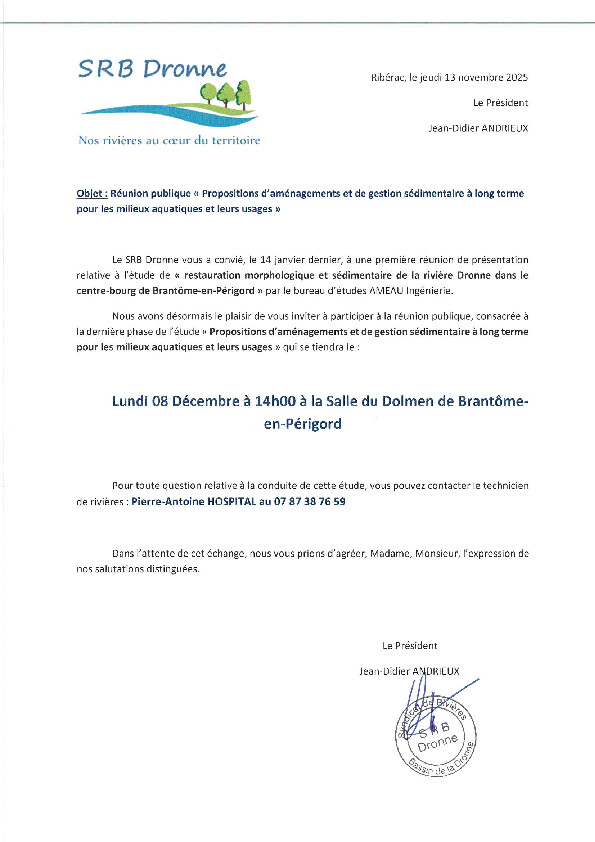 Elle se tiendra le jeudi 27 novembre 2025 à 14h dans la salle du conseil de la mairie de Brantôme.