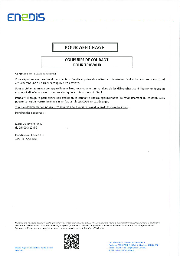 ℹ️ Le courant pourra être rétabli avant l’horaire indiqué.