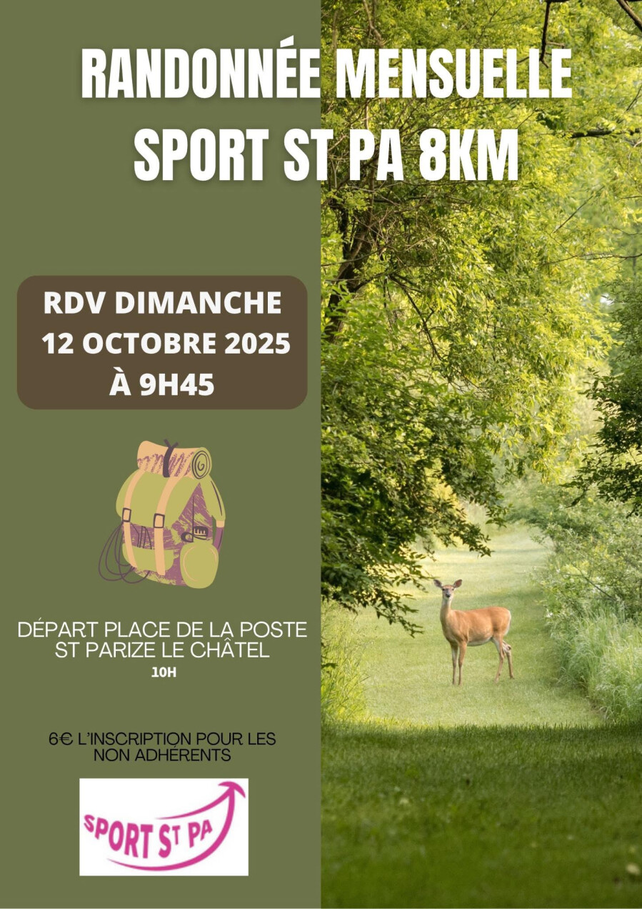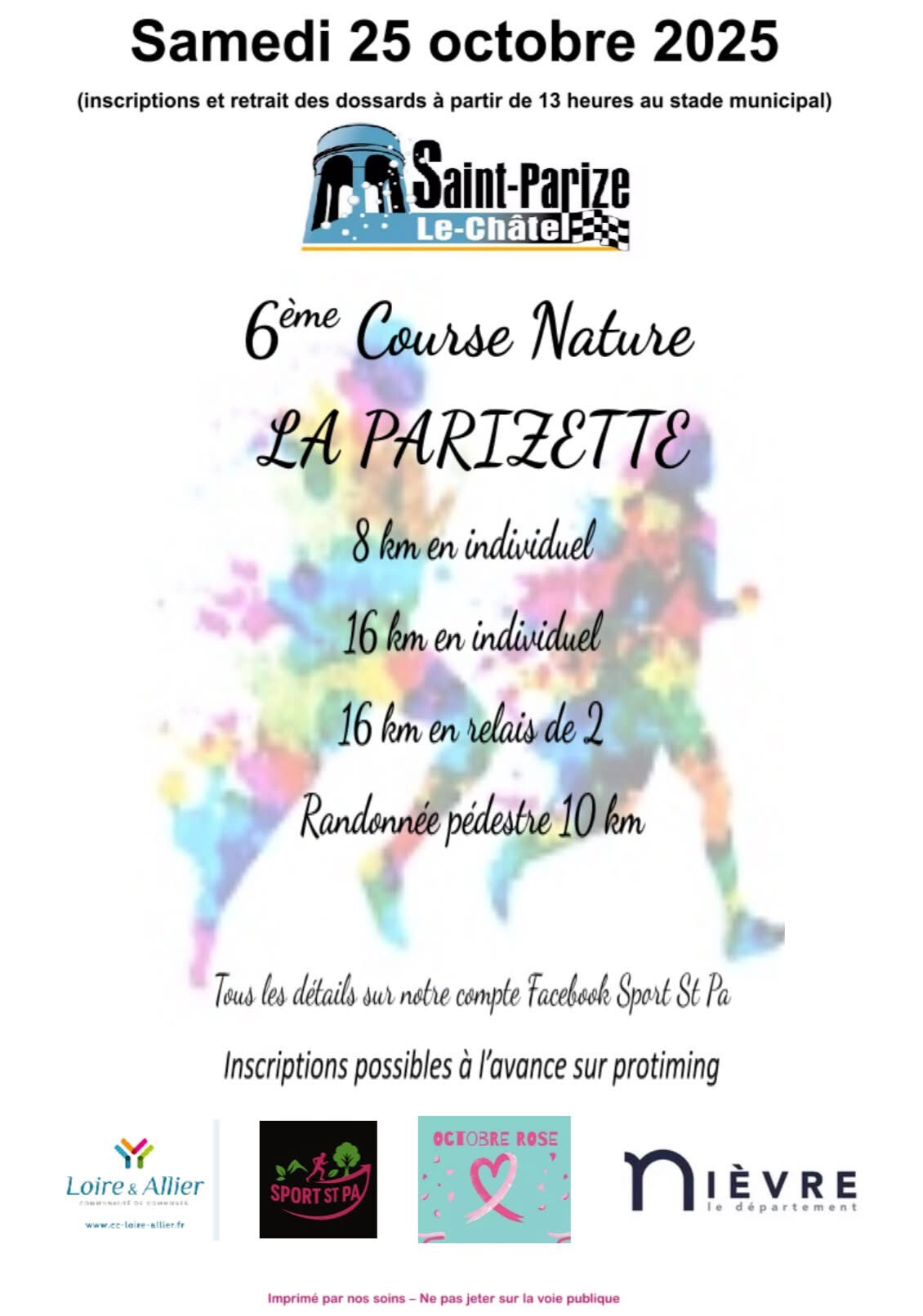 L’association Sport St Pa 😜 organise la 6e édition de la Parizette le SAMEDI 25 OCTOBRE 2025 après-midi à St Parize le Chatel !