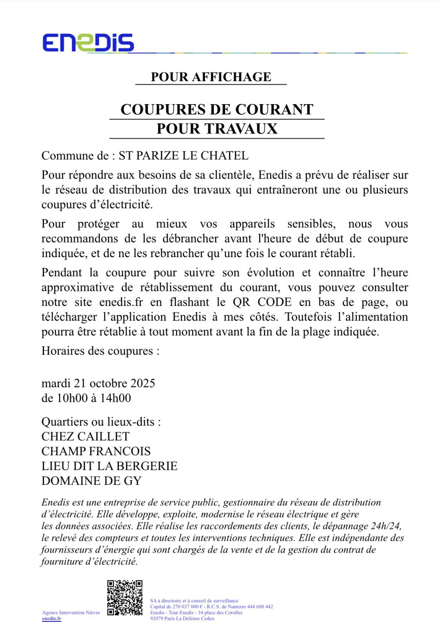 à Saint-Parize-le-Châtel, le jeudi 16 octobre 2025 à 14h30, salle des Cérémonies à la Mairie :