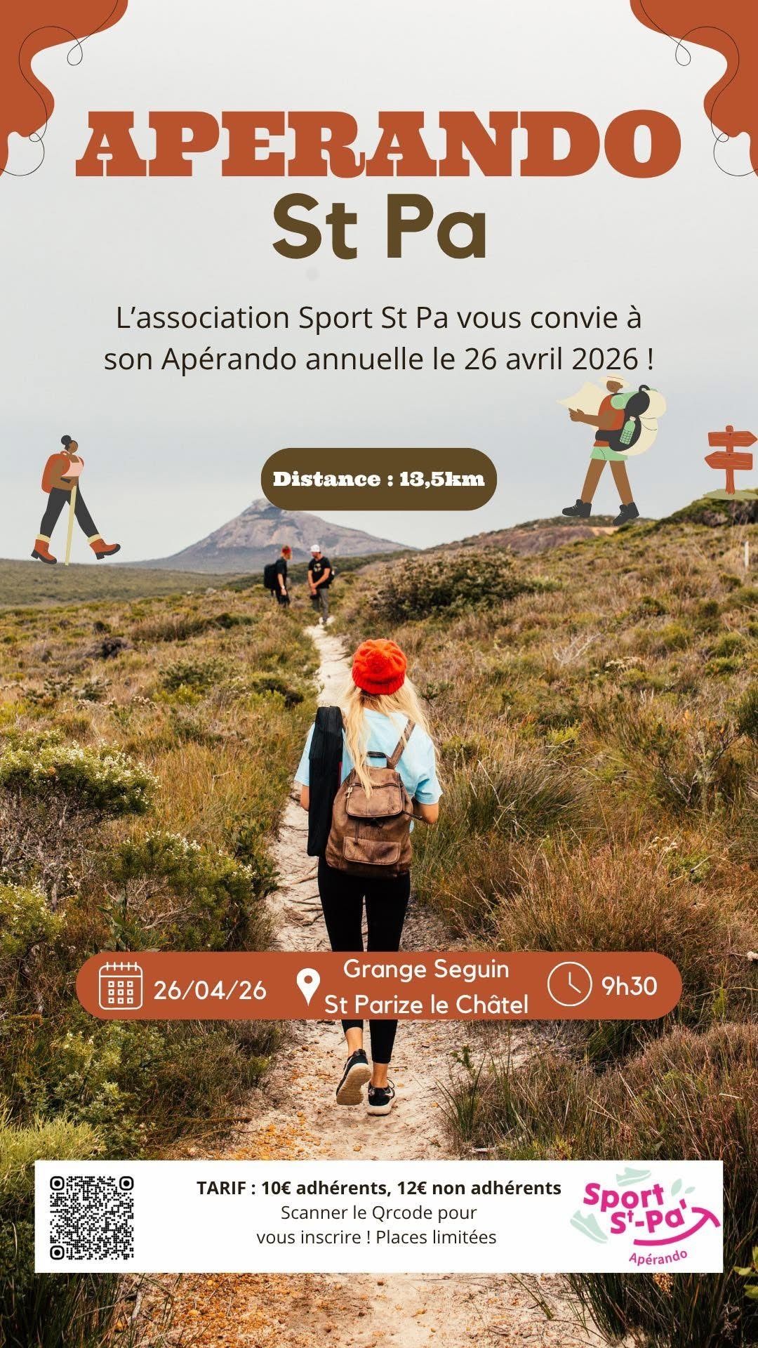⚠️Attention les places sont limitées, pensez à vous inscrire en cliquant sur le lien suivant : https://www.helloasso.com/associations/sport-st-pa/adhesions/aperando-2026