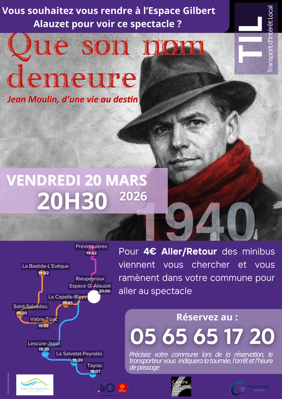 Le Transport d’Intérêt Local (TIL) qui fait la navette entres les communes de l’intercommunalité et l’Espace Culturel Gilbert Alauzet assurera le transport des passagers pour 1 évènement en mars :