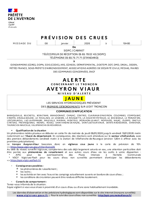 Le département de l’Aveyron est placé en vigilance orange neige verglas, à compter de 22H00.