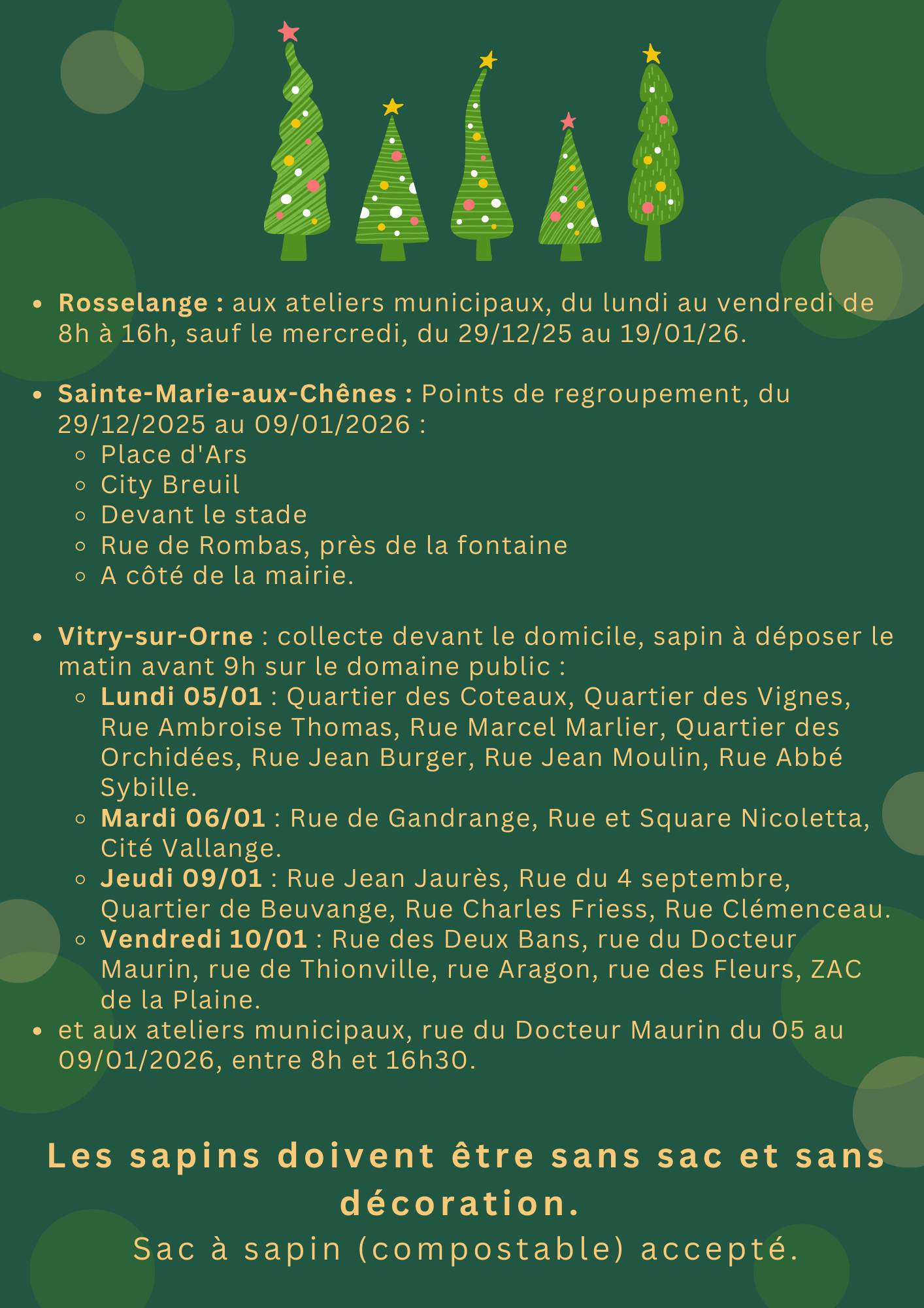 👉️ La collecte du tri sera reportée au samedi 27 décembre 2025 pour les communes de Clouange, Rosselange et Vitry-sur-Orne.
