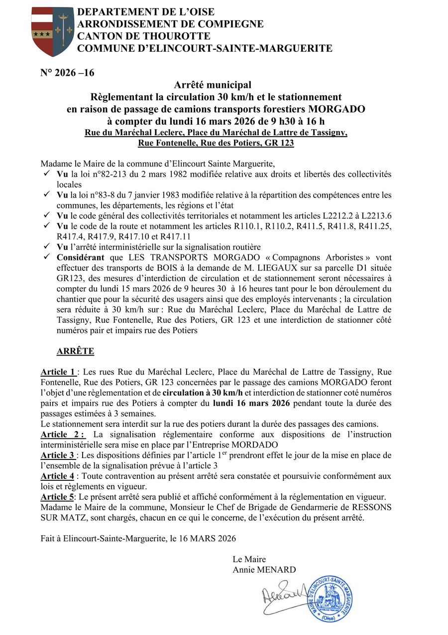 Un Arrêté va être pris pour réglementer la circulation et le stationnement lorsque j'aurai plus d'informations.