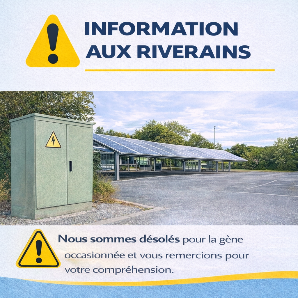 🔌 Le coffret électrique situé à proximité des ombrières de l’école émet actuellement un bruit anormal.
