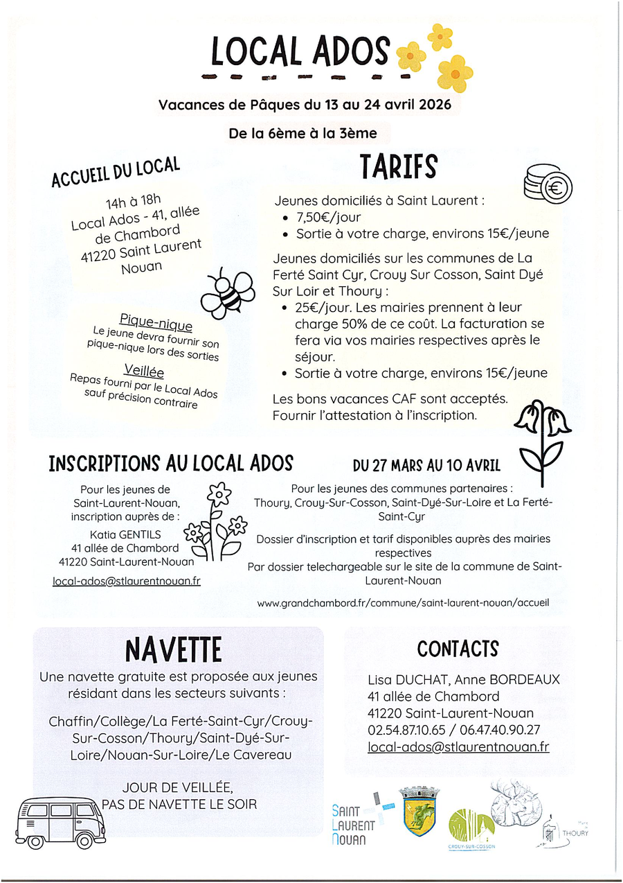 Le local ados sera ouvert du 13 au 24 Avril 2026