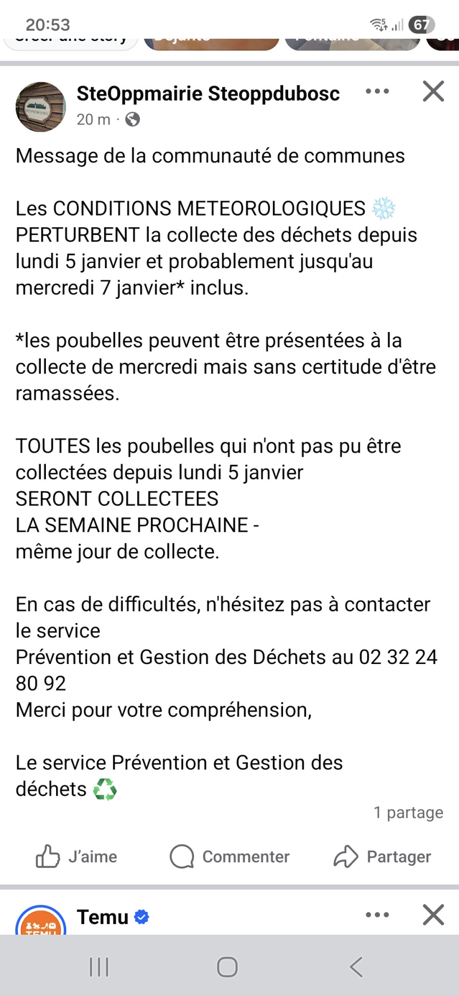 Ceci est un message d'alerte de la préfecture :