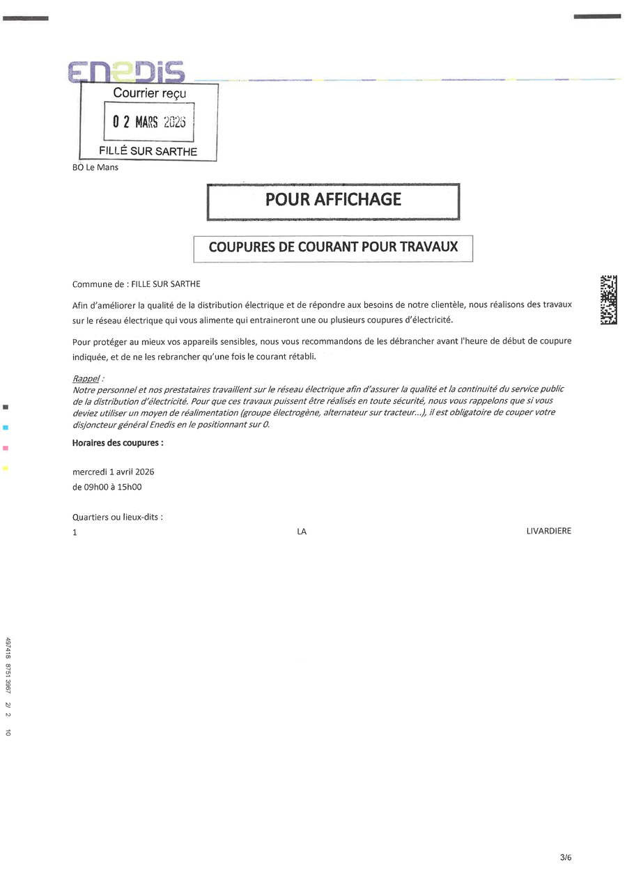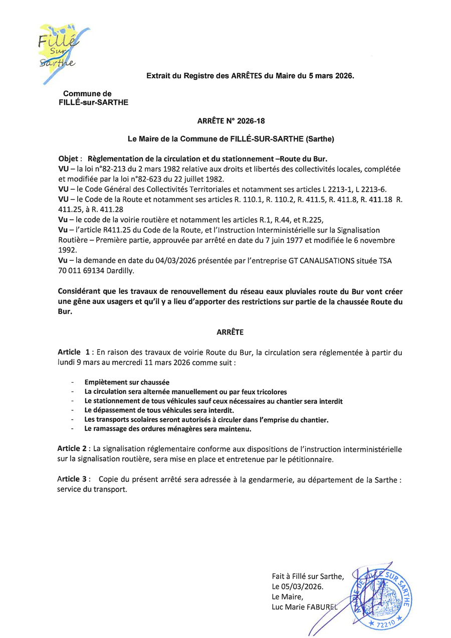 Par arrêté ministériel du 3 mars 2026, la commune de Fillé-sur-Sarthe a été officiellement reconnue en état de catastrophe naturelle pour les inondations et coulées de boue survenues entre le 9 et le 24 février 2026.