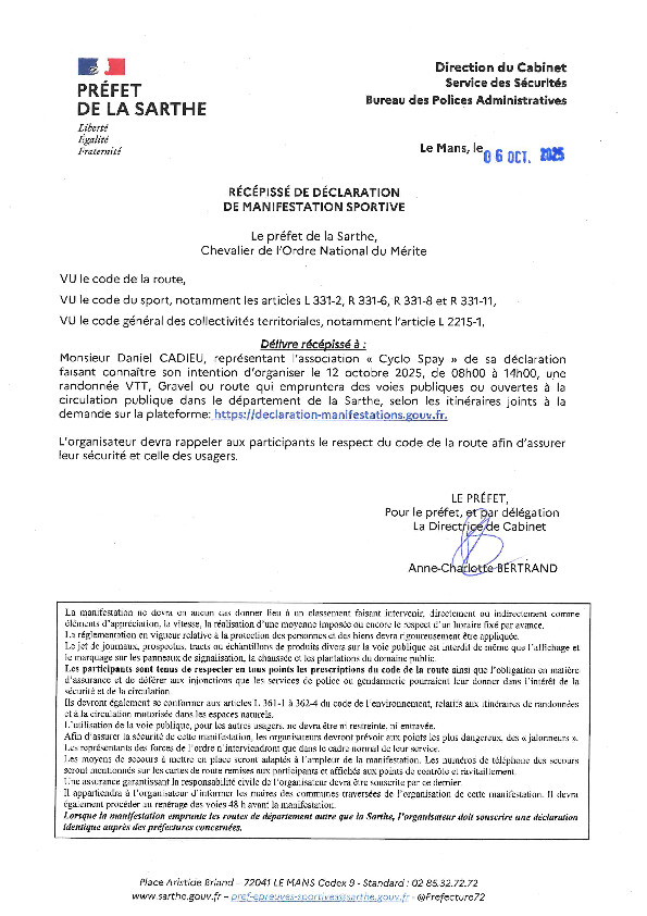 L’association Cyclo Spay, représentée par Monsieur Daniel CADIEU, a le plaisir d’annoncer l’organisation de