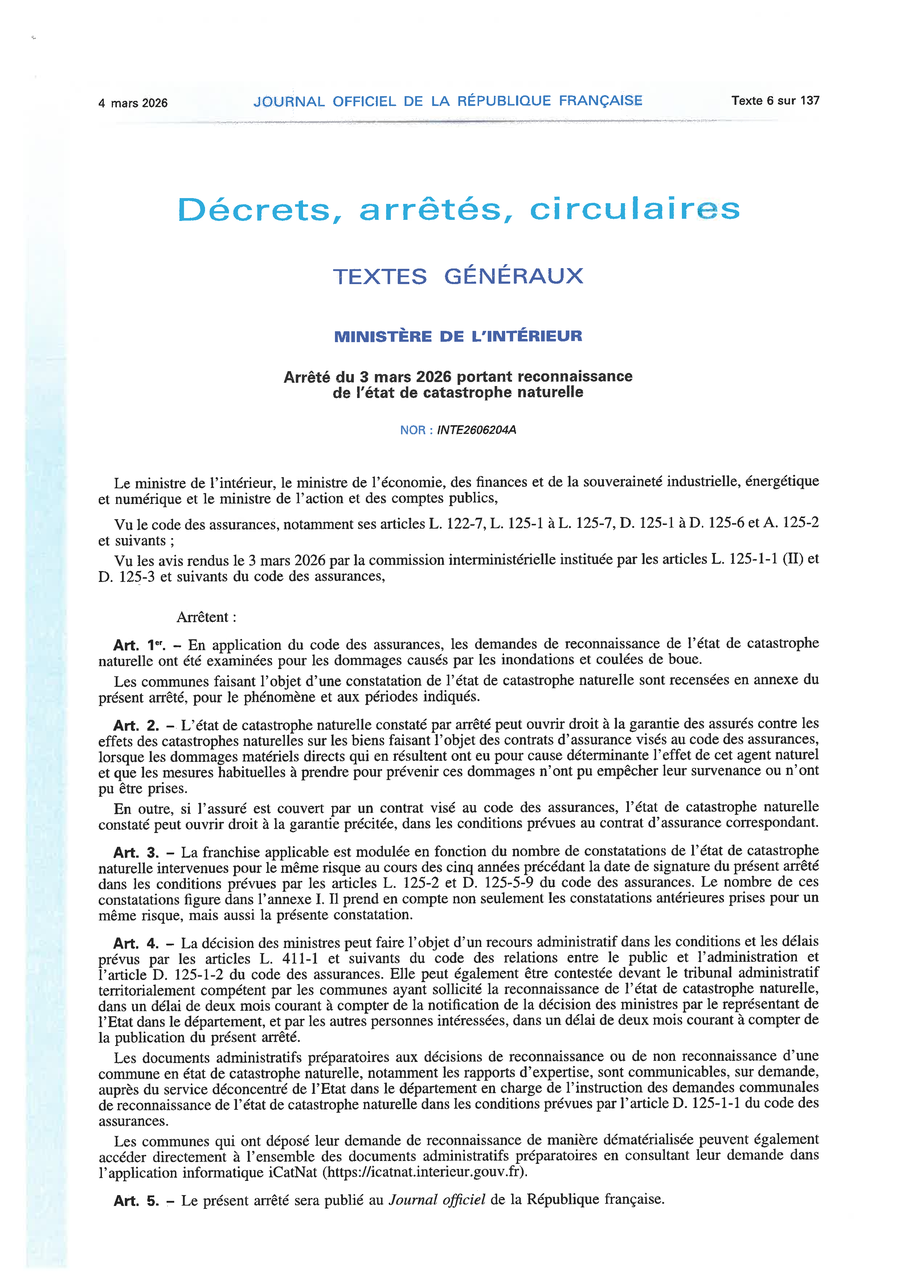 Cette reconnaissance permet aux sinistrés d’activer la garantie catastrophe naturelle prévue dans leurs contrats d’assurance.