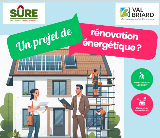 Nous souhaitons vous rappeler l’existence du Service Unique de Rénovation Énergétique (SURE) mis en place par la Communauté de Communes du Val Briard, afin que vous puissiez orienter les habitants de votre commune vers ce dispositif d’accompagnement gratuit.