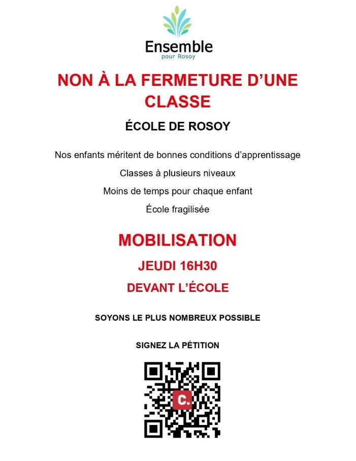 La fermeture envisagée d’une classe à l’école de Rosoy suscite légitimement des interrogations au sein de notre commune.