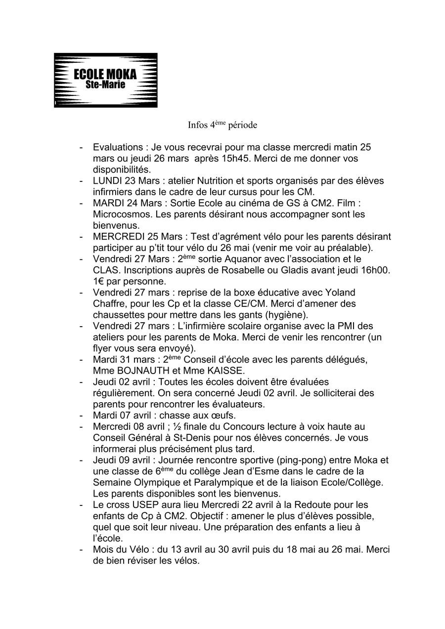 Nous vous remercions de votre attention et de votre engagement pour le bien être de votre enfant.